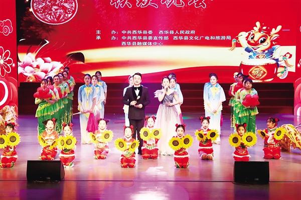 春节前夕,西华县2024年春节联欢晚会在县全民艺术中心精彩上演,为广大群众献上一道丰盛的文化大餐。 记者 张猛 孙靖 通讯员 李晗光 许刚 摄