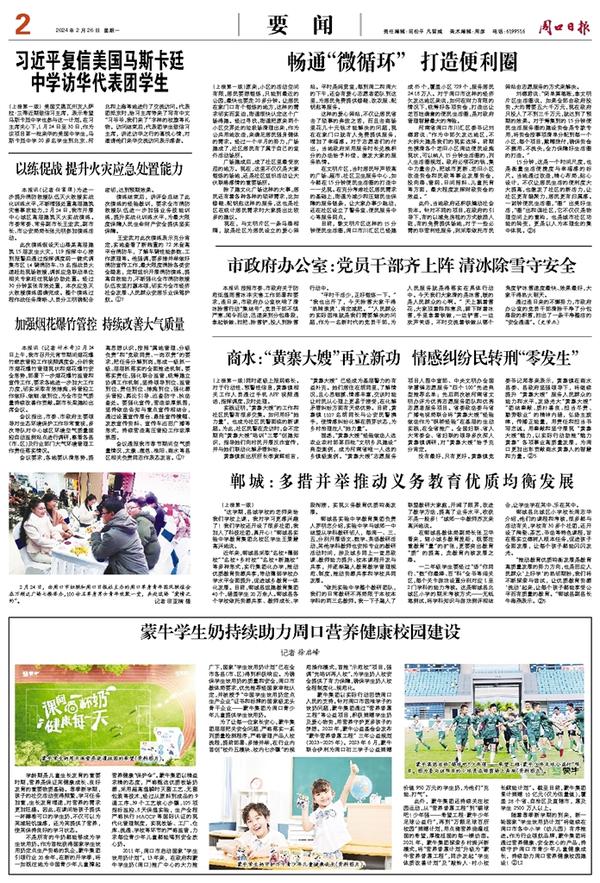 随着春季新学期的到来,新一轮国家“学生饮用奶计划”将继续在周口市各中小学(幼儿园)有序推进。作为行业领航品牌,蒙牛集团将通过营养健康、安全放心的产品,持续守护周口市青少年儿童健康成长,持续助力周口营养健康校园建设!②12
