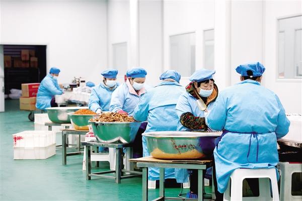 为了给家乡群众提供更多的发展机会,让村民在家门口就业,降低生活成本,提高生活质量,有效维护当地社会的稳定和发展,一些在外成功创业人士选择返乡投资建厂。图为3月1日,扶沟县城郊乡罗沟村村民正在村头的味思美食品厂务工,该企业已接收当地村民200多人。记者 刘俊涛 摄