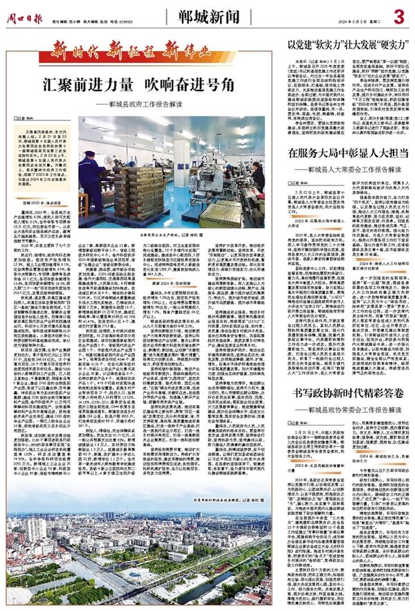 2月22日上午,郸城县第十五届人民代表大会第四次会议开幕,郸城县人大常委会主任贾庆伟受县人大常委会委托,向大会报告工作。