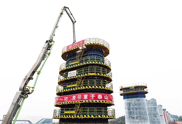 3月4日,中铁三局的施工人员在成渝中线高铁土红湾特大桥建设现场作业。当日,由中铁三局承建的成渝中线高铁土红湾特大桥下部主体工程全部完工,全路段建设有序推进。成渝中线高铁是我国“八纵八横”高铁网沿江通道的重要组成部分,正线全长292公里,设计时速350公里。 新华社记者 江宏景 摄