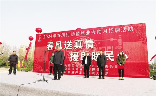 本报讯(记者 宋风 通讯员 靳明月) 3月2日,周口临港开发区启动2024年“春风行动”暨“就业援助月”招聘活动。临港开发区党工委书记孙鹏宣布活动启动令。临港开发区党工委副书记张晓东致辞。区直各单位负责人和企业负责人参加活动。