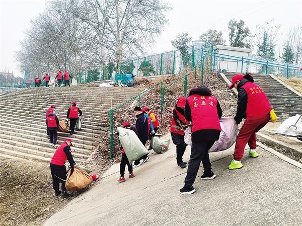 为弘扬雷锋精神,宣传环保理念,保护母亲河水生态环境,3月5日,第61个学雷锋纪念日当天,周口安保集团有限公司员工、民间河长、环保志愿者、周口大铁牛志愿者等50余人,在周口大闸沙颍河南岸开展了第215次“守护母亲河 环保志愿行”周护河活动,共清理河坡10000平方米,捡拾清理清运白色垃圾、枯枝杂物约1000公斤。 记者 沈湛 摄