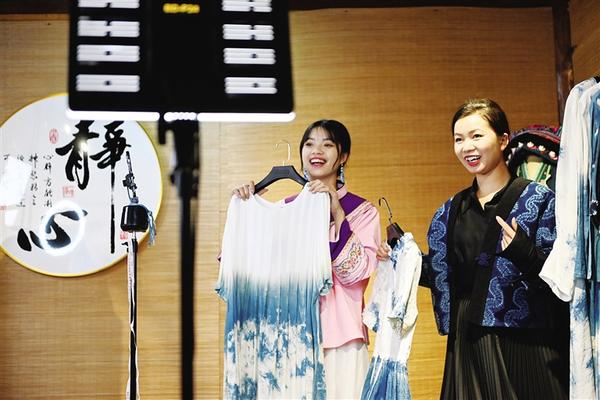 2015年,在外闯荡多年的李利返回家乡贵州省黔西南布依族苗族自治州创业。手工制作土布、手包、衣服、围巾……她创作了一系列民族文创产品。