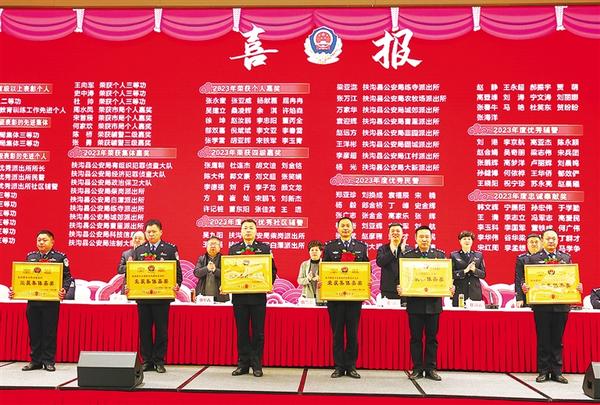近日,扶沟县公安局召开2024年公安工作会议,对获得省级、市级先进的个人和集体进行表彰。图为颁奖活动现场。 记者 金月全 通讯员 史中涛 摄