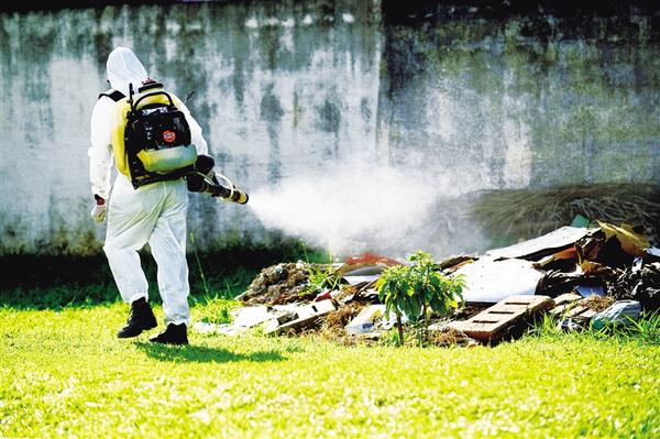 3月9日,在巴西首都巴西利亚一所学校内,公共卫生人员喷洒灭蚊剂。目前,巴西首都联邦区以及里约热内卢州、阿克雷州等6个州已因登革热暴发宣布进入公共卫生紧急状态。巴西卫生部3月8日更新的数据显示,今年以来,巴西已记录1342086例登革热病例(含疑似病例),其中363例确诊病例死亡。卢西奥·塔沃拉 摄(新华社发)
