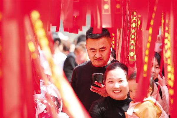 3月11日,旅游群众将象征祈福的彩带系满太昊陵蓍草园。当日是第一届周口伏羲文化旅游节开幕日。