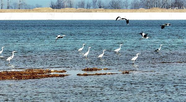3月12日,引江济淮郸城配套工程水库水光潋滟,白鹭纷飞。据悉,2023年年底,郸城县引江济淮工程项目已在全市率先通水达效,让广大群众喝上了长江水,既惠民利民,又改善了生态环境。记者 徐松 摄