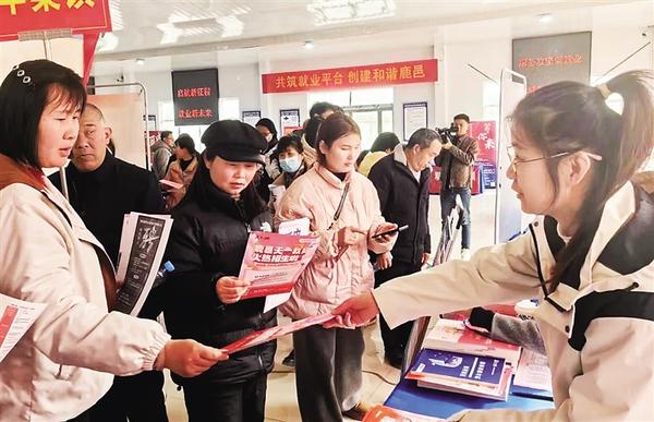 近日,由县委、县政府主办的2024年“春风行动”招聘会启动仪式在县零工市场举行。此次招聘会共邀请60多家本地企业和省外知名企业参加,提供就业岗位1万余个,可满足求职者多元化的就业需求,让广大求职者与企业实现“双向奔赴”。图为招聘企业工作人员向求职者发放宣传页。 记者 侯国防 通讯员 赵梦赛 摄