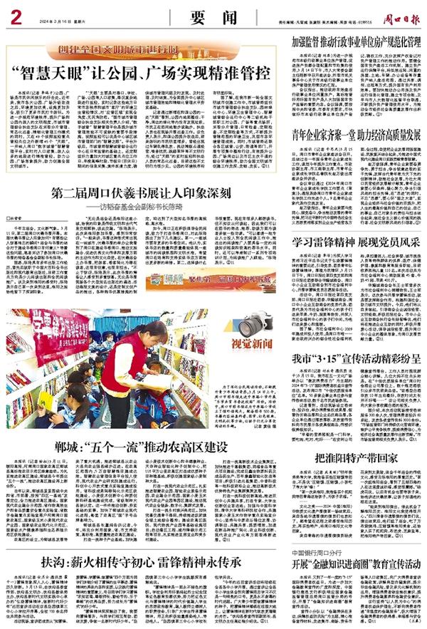 如今,周口正在积极倡导全民阅读,致力于打造书香周口,对此陈琦提出了如下几点建议。第一,一座城市要有更多的书香空间。他认为,实体书店的数量和质量最能体现一座城市的阅读氛围和文明水准,希望周口在培育和支持实体书店方面推出更多新的举措。第二,选择读什么书很重要。现在有很多人都想读书,但不知该从何读起,因此我们可以在图书的筛选、推荐、助读方面为读者多做一些功课。“可以邀请一批专业人士投入到全民阅读工作中,推选出的阅读推广人要具备一定的阅读知识框架和较高的荐书水平。同时,还可以考虑制订一系列专项培训计划,为阅读推广人赋能。”陈琦表示。②11