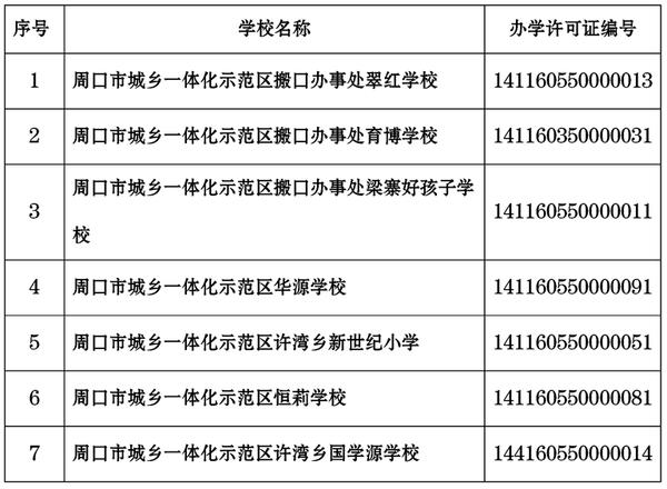 根据上级有关文件精神,周口市城乡一体化示范区辖区内以下7所民办学校不符合办学条件,示范区社会事务管理局已于2022年9月1日责令其停止办学,同时作废其办学许可证。 特此公告 周口市城乡一体化示范区社会事务管理局 2024年3月16日