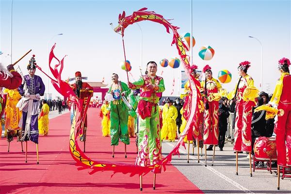 3月18日,演员进行高跷秧歌表演。当日,辽宁省盘锦市举办盘锦首届渔雁文化节暨第六届二界沟开海节。活动中渔家祭祀、非遗秧歌、舞狮等演出再现当地渔雁文化,渔民也通过这样的形式表达盼望新一年渔业丰收的美好愿望。 新华社记者 潘昱龙 摄