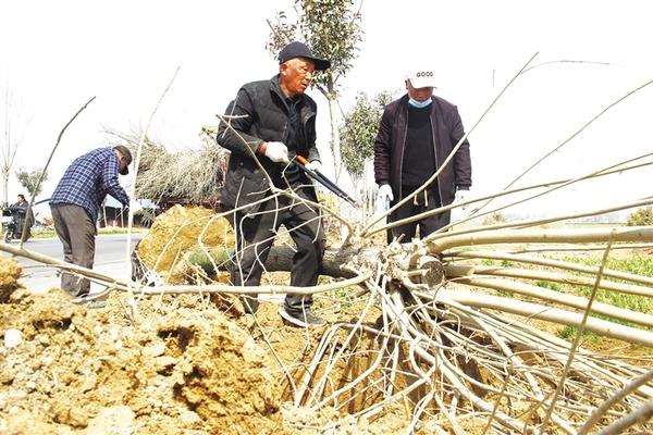 今年以来,商水紧紧围绕森林村庄建设做文章,积极实施县乡道路生态长廊建设工程,助力全域生态环境提档升级。图为郝岗镇练庄行政村群众对准备栽植的树木进行修剪。