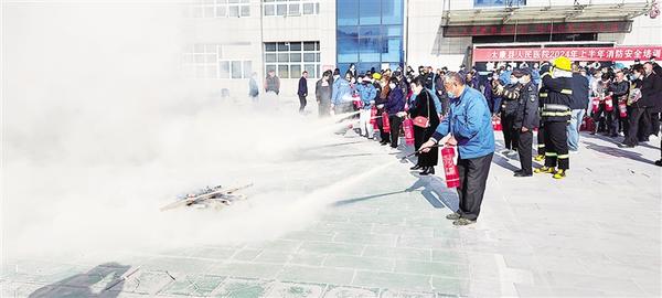 为加强医院消防安全管理,让院内职工增强消防安全意识、掌握消防技能、提升火灾防范扑救能力,3月21日,太康县人民医院组织开展2024年上半年消防安全知识培训暨技能演练。图为演练现场。 史书杰 摄