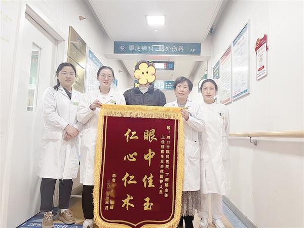 本报讯 近日,市民周先生专程来到周口市眼科医院,将一面写有“眼中佳玉 仁心仁术”字样的锦旗送到眼底病科医生手中,感谢医生帮其解除病痛。