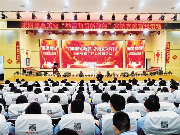 近日,“中国好人”“全国巾帼建功标兵”薛华杰到太康县新时代高级中学,参加由县总工会主办的“巾帼劳模工匠进校园”活动,结合“巾帼匠心逐梦 强国复兴有我”主题及自己多年的创业经历,为学生作报告。图为活动现场。 记者 张洪涛 摄