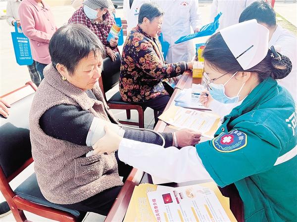 3月29日,周口市人民医院医护团队走进川汇区城北街道邵火庙行政村,开展“健康周口行、大医献爱心”健康科普进乡村志愿服务活动。图为活动现场。