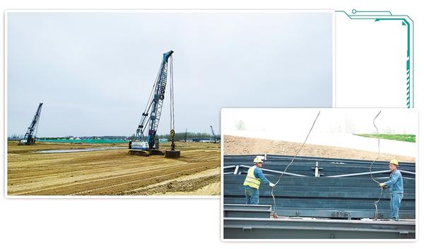 左图:施工现场桩机林立。 下图:工人正在紧张施工。 4月7日,周口港中心港区中心作业区一期工程建设工地上桩机林立、人头攒动,工人正在紧张施工。据介绍,周口港中心港区中心作业区一期工程总投资39.85亿元,是河南省首个按百万级专用集装箱码头定位的高标准港口项目,新建13个2000吨级集装箱专用泊位,泊位总长度1089米,设计年通过能力107.5万标箱。记者 刘俊涛 摄
