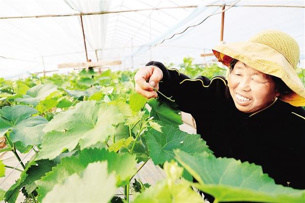 淮阳区柳湖街道李集村村民丁得富,凭着对致富的执着追求和对美好生活的向往,20年来不断探索、尝试,终于找到了属于自己的致富门路——种植葡萄。在他的精心呵护下,葡萄园中的葡萄长势喜人。图为丁得富妻子正在管理葡萄。记者 刘俊涛 摄