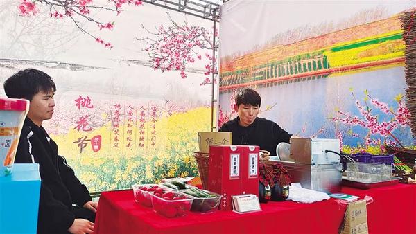 近日,西华县农特产品亮相桃花源风景区,备受游客青睐。图为农特产品展台。 记者 张猛 孙靖 摄