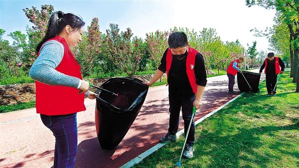 “您好,车辆请停放在道路两侧的停车位或停车场。”“入园游玩时请不要乱扔垃圾”“请看好自己的小孩不要到河边玩水,注意安全。”在周口大道桥南向西的堤岸游园内,身穿红马甲的志愿者一边捡拾纸屑、烟头,一边协助园林中心工作人员维护游园秩序,提醒大家把文明出行、文明旅游记在心中,做文明游客。