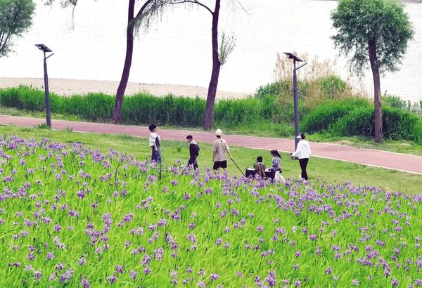 乔木灌木和色叶植物错落有致,休闲步道便民利民,景石安置、水景营造、照明亮化别具匠心,“以人为本”的理念无处不在。水利部门还通过生态缓坡、亲水河滩等方式,借水拓绿、借水生景;通过种植菖蒲、香蒲、千屈菜等水生植物,净化水质,打造“会呼吸”的人工湿地。