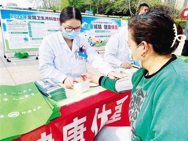 为倡导文明健康绿色环保生活方式,全面推进健康川汇建设,日前,由川汇区卫健委、川汇区爱卫办主办的“健康城镇 健康体重 ”第36个爱国卫生月大型健康义诊宣传活动在川汇区文化广场举行。图为参加活动的周口市人民医院医务人员在为群众义诊。 史书杰 摄