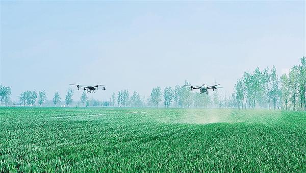 眼下正是小麦病虫害防治的关键时期,为加强小麦管理、实现稳产高产、降低农户种植成本,扶沟牧原农牧有限公司联合练寺镇积极采购农药、协调飞防无人机,投入3.4万余元,免费为练寺镇陶村、桑村、新练寺村3个行政村400多户农民的1700多亩麦田开展“一喷三防”惠农服务,为今年小麦丰产丰收打下坚实基础。图为近日,飞防无人机正在进行“一喷三防”作业。 记者 金月全 通讯员 团结 志强 摄