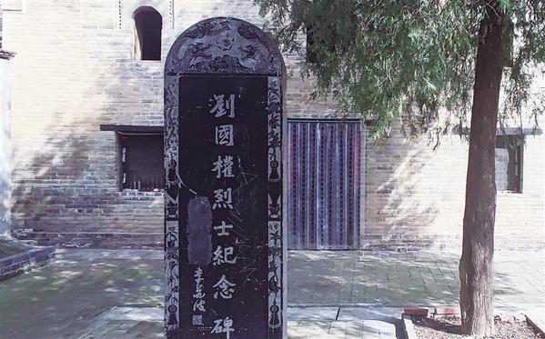 位于“八八楼”前的刘国权烈士纪念碑。
