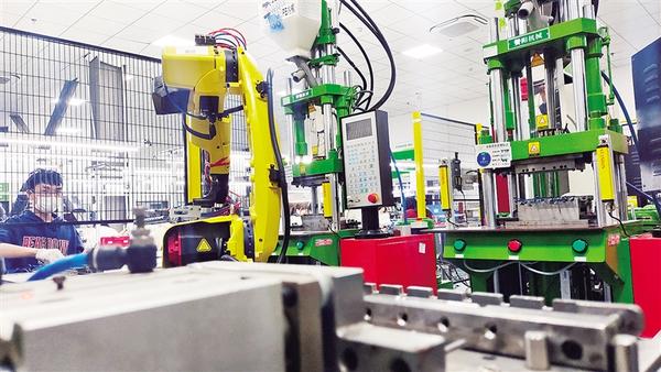 近年来,西华县充分发挥科技的力量,驱动优势产业集聚发展。图为海鑫精密项目机器人正在作业。 记者 张猛 孙靖 摄