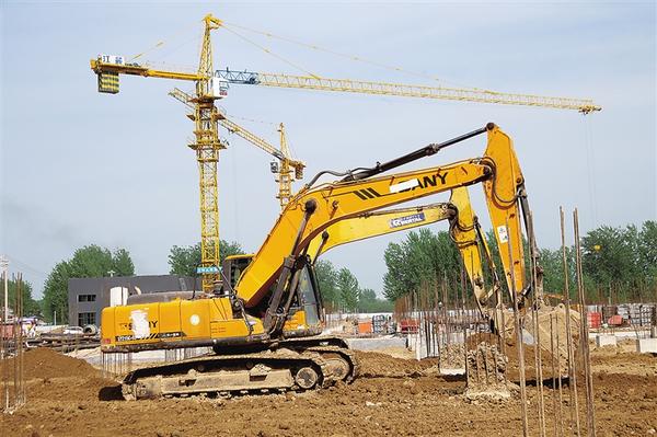 4月25日,在周口临港开发区鑫丰生物经济产业园施工现场,机械轰鸣,运输车辆来往不断,塔吊高效运转,描绘了一幅火热的生产景象。鑫丰生物经济产业园项目占地206亩,预计总投资10亿元,致力打造成为业内领先的集兽用药品研发、生产、销售、技术开发、技术转让为一体的综合型企业。 记者 宋风 摄