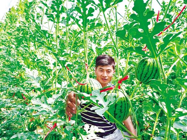 4月25日,在扶沟县固城乡土河行政村,种植户焦景超正在查看小吊瓜长势。近年来,扶沟县因地制宜发展果菜产业,全面推进乡村振兴,加快农业农村现代化进程,促进农业高质量发展,为当地老百姓创造更多就业增收的机会。记者 金月全 摄