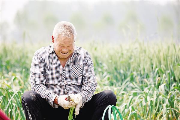 又到大蒜收获季,白亮亮的大蒜铺满田间,蒜田里弥漫着浓郁的蒜香,让人感受到浓浓的乡土气息。大蒜收获季的到来,不仅预示着丰收,更带来了蒜农们对美好生活的期盼。图为近日市城乡一体化示范区刘拱堂村村民正在田间收获大蒜。
