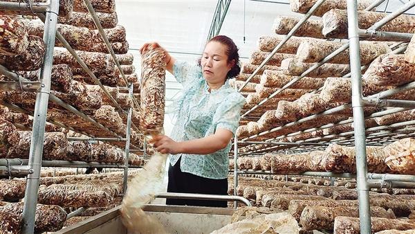 近年来,西华县积极实施科技创新发展特色产业,助力乡村振兴,以卫奇农牧为龙头带动的食用菌产业得到蓬勃发展。图为5月9日,一名工人正在卫奇农牧生产车间整理菌棒。