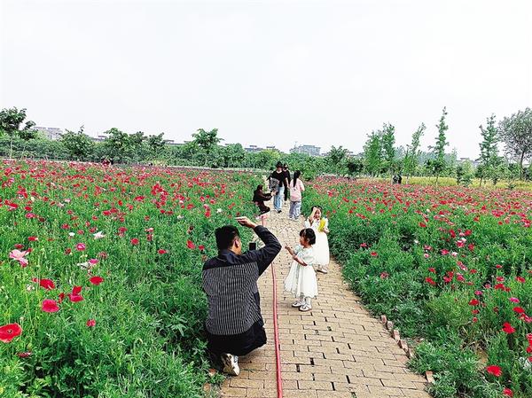 近年来,鹿邑深入贯彻“创新、协调、绿色、开放、共享”的新发展理念,扎实推进生态园林城市建设,利用城区空闲地种植时令花卉,持续提升城市品位,全力打造生态宜居环境。大图为鸣鹿体育公园西侧花园里鲜花竞相绽放。小图为群众在花园里拍照留念。
