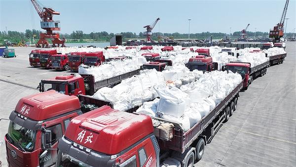 目前,周口港中心港区迎来物流高峰期。近年来,周口临港开发区充分发挥交通区位优势,大力发展临港物流业,码头货运吞吐量快速增长,临港物流业呈现出欣欣向荣的发展态势。记者 宋风 摄
