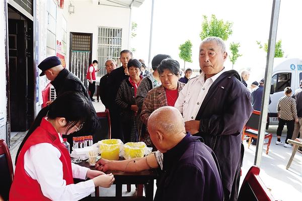 日前,项城市孙店镇组织镇卫生院及村卫生室医务人员为65岁以上老人开展免费体检服务,引导广大群众树立“有病早治、无病要防”健康理念。