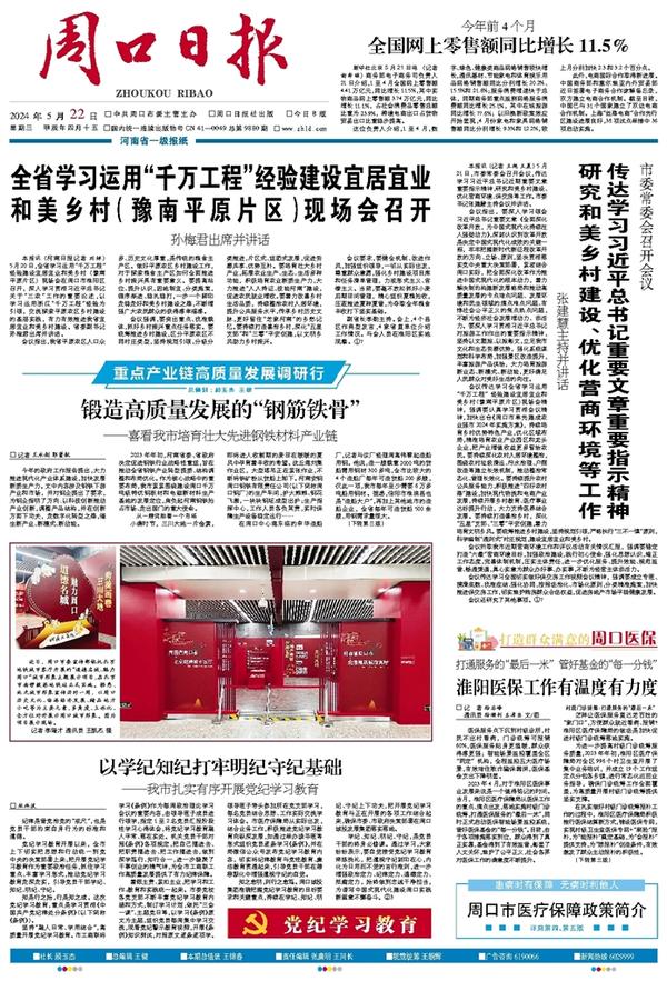 会议传达学习全省学习运用“千万工程”经验建设宜居宜业和美乡村(豫南平原片区)现场会精神,强调要认真学习贯彻会议精神,加快出台《周口市率先建成农业强市2024年实施方案》,持续培育乡村优势特色产业,优化区域布局,精准培育农业产业园区和龙头企业,把产业增值收益更多留给农民。要持续深化农村人居环境整治,围绕农村垃圾清运、污水治理、户厕改造等建立长效机制,推动整治常态化、管理长效化。要持续提升农村公共服务能力,积极推进“四好农村路”建设,加快现代物流和电商产业发展,持续开展乡村教育、医疗事业达标提升行动,大力支持医养结合发展。要持续打造善治乡村,深化“五星”支部、“三零”平安创建,着力培育文明乡风。要统筹推进乡村建设,坚持规划引领,严格执行“三不一慎”原则,科学编制“通则式”村庄规划,建设宜居宜业和美乡村。
