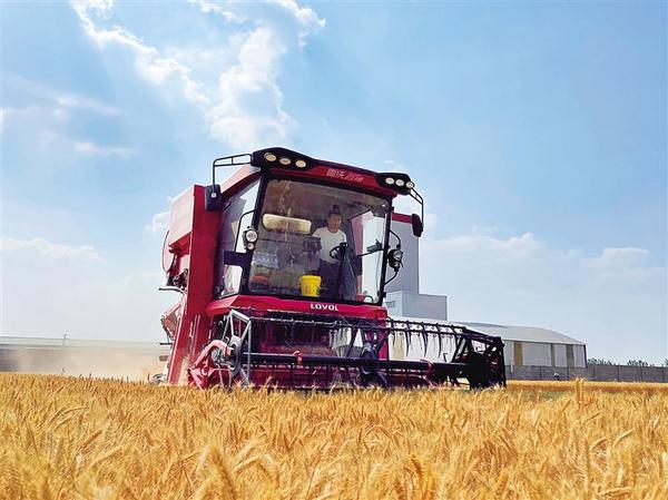5月22日下午,一台收割机正在西华县东王营乡的麦田里收割小麦,正式拉开了该县小麦机收大战的序幕。 记者 张猛 孙靖 摄