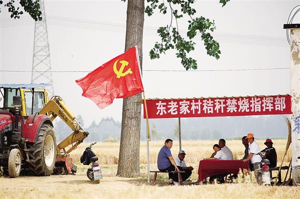 为强化广大群众的麦田防火意识,连日来,西华县东王营乡积极组织党员志愿者到田间地头向群众宣传防火知识,旨在营造一个安全、和谐的麦收环境。图为5月21日,党员志愿者在田间地头向群众宣传秸秆禁烧的有关要求。 记者 刘俊涛 摄