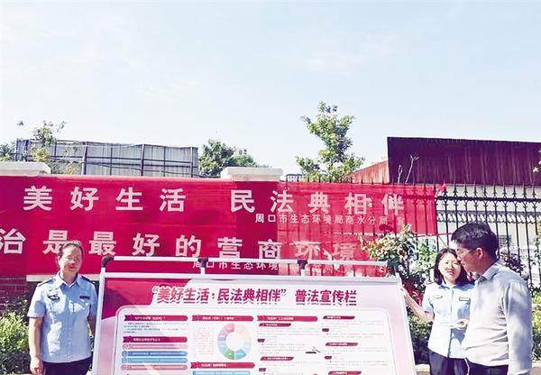 5月16日上午,周口市生态环境局商水分局以优化营商环境为重点,开展普法宣传活动。在普法宣传过程中,该分局工作人员重点讲解了涉及生态环境保护的相关法律条款。