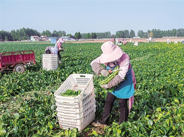 近年来,张集镇不断优化农业产业结构,大力发展特色果蔬种植,提高土地利用率、农产品附加值,助力农业增效、农民增收。近日,该镇种植的菜心进入收获季,菜农抓紧采摘,保障市场供应。 记者 张洪涛 通讯员 王磊 摄