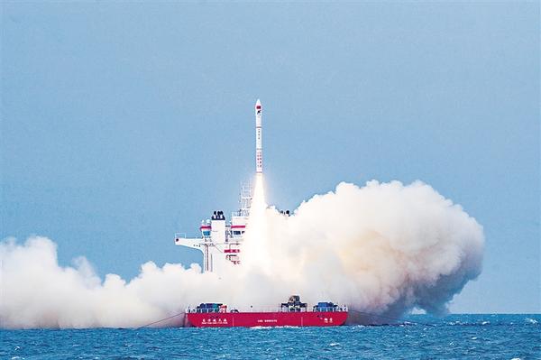 5月29日16时12分,我国太原卫星发射中心在山东附近海域成功发射谷神星一号海射型遥二运载火箭,搭载发射的天启星座25星-28星顺利进入预定轨道,飞行试验任务获得圆满成功。新华社发(李超 摄)