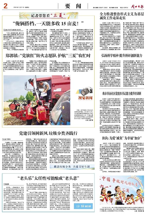 “今年我们这里小麦单产1100斤左右,我们越干越有劲……”程文喜笑着对记者说,“特别是我爱人,胆大心细,吃苦耐劳,我俩搭档开这台收割机,一天能多收15亩麦!”②6