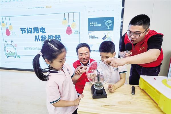 5月30日,余姚市大城小爱公益服务中心的志愿者在余姚市凤山街道第二中心幼儿园给孩子们上“低碳节能”科普课。