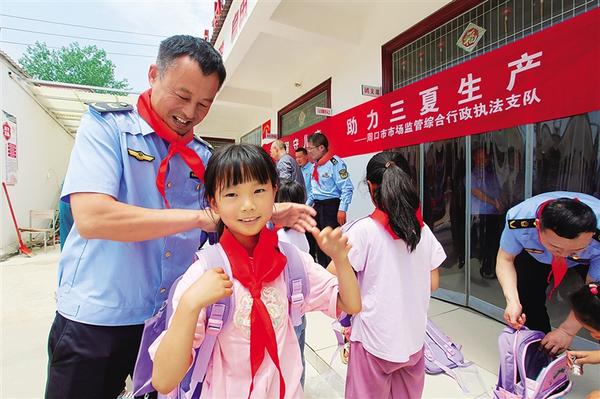 日前,周口市市场监管执法支队驻商水县邓城镇许村工作队为村内20余名留守儿童送去书包、文具盒等学习用品,陪他们度过一个健康、快乐、有意义的节日。记者 马治卫 通讯员 刘飞 摄