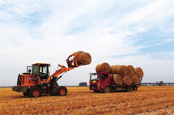 连日来,在抓好麦收工作的同时,商水大力推广秸秆回收再利用,提高秸秆综合利用率,保护环境,促进农民增收。图为5月30日,在邓城镇程寨村麦田里,农机手操作机械进行小麦秸秆打捆作业。记者 马治卫 通讯员 刘飞 程婉莹 摄