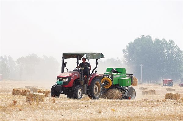 6月3日,淮阳区郑集乡殷古洞村民正在田间打捆秸秆。 近年来,我市践行“绿水青山就是金山银山”理念,大力推广秸秆回收再利用,回收的秸秆用于养殖、生物质发电等领域,提高了秸秆综合利用率。既能当饲料又能当燃料,秸秆变废为宝,富农增收,环保节能,助推农业绿色发展。 记者 刘俊涛 摄