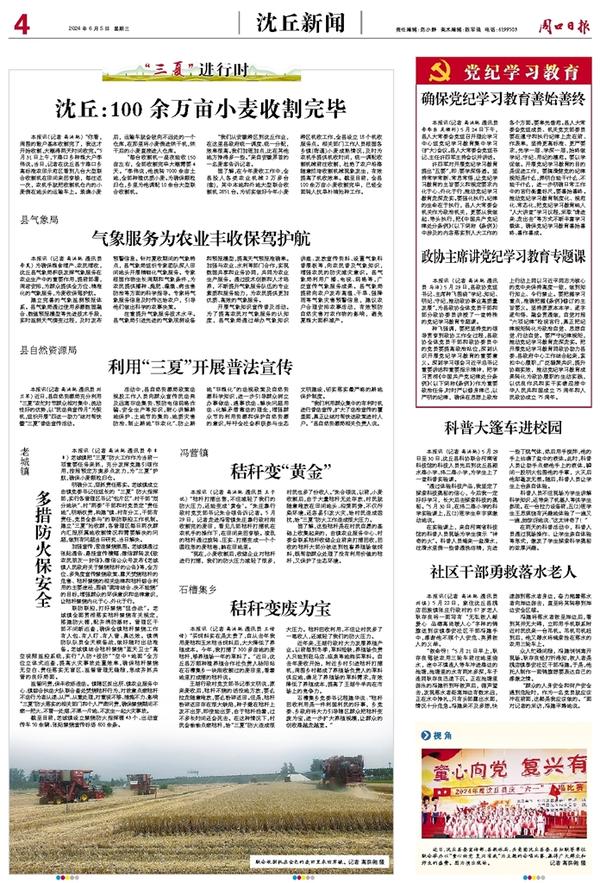 本报讯(记者 高洪驰) “你看,周围的散户基本收割完了,我这才开始收割,大概得两天时间收完。”5月31日上午,卞路口乡种粮大户李伟说。当日,记者在沈丘县卞路口乡高标准农田示范区看到几台大型联合收割机在田间来回穿梭,每往返一次,农机手就把收割机仓内的小麦倒在地头的运输车上。装满小麦后,运输车就会驶向不远处的一个仓库,在那里将小麦倒进烘干机,烘干后的小麦直接进入仓库。