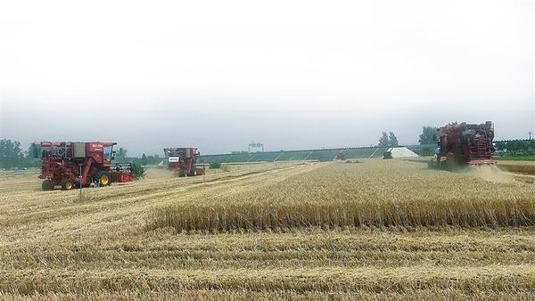 联合收割机在金色的麦田里来回穿梭。记者 高洪驰 摄